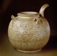 說 明: 青綠色玻璃質(zhì)釉,映出刻、剔、劃裝飾.頗具佛教藝術(shù)色彩.造型豐滿,實用性強.此種器物唯見南朝時期.