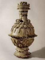 說 明: 此件是北朝封子繪和祖氏墓中出土的四件尊之一.胎質(zhì)灰白細(xì)密,釉色于灰,積聚處深綠.器型宏偉.