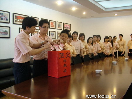 5月13日,英皇衛(wèi)浴公司董事總經(jīng)理梁慧枝女士得知四川的災(zāi)情之后,發(fā)動(dòng)全體員工掀起了一場(chǎng)“賑災(zāi)捐款支援四川同胞”的募捐活動(dòng),并帶頭募捐了5000元。在梁慧枝女士的帶領(lǐng)下,英皇衛(wèi)浴公司總部的員工紛紛慷慨解囊,截至15日中午,英皇衛(wèi)浴員工的捐款金額已經(jīng)達(dá)到3萬元。