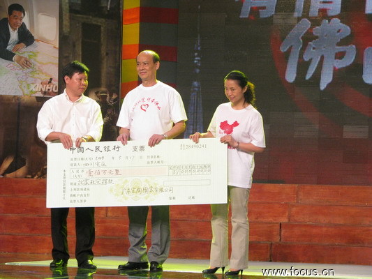 5月17日晚上在佛山新聞中心,宏宇企業(yè)應(yīng)邀參加由佛山市紅十字會(huì)、佛山市慈善會(huì)和佛山傳媒集團(tuán)主辦的“汶川地震 情牽佛山” 佛山各界大型賑災(zāi)義演晚會(huì),副總歐家瑞先生作為企業(yè)界的嘉賓代表接受記者的現(xiàn)場(chǎng)采訪。歐總為災(zāi)區(qū)人民的危難而感到由衷的痛心,為企業(yè)全體上下員工踴躍獻(xiàn)愛心的熱情感到欣慰,并祝愿災(zāi)區(qū)人民盡快渡過難關(guān),重建家園。