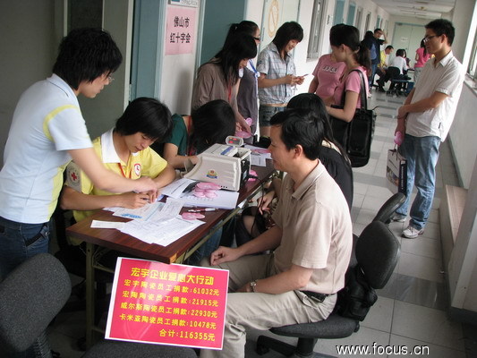 截止到18日,宏宇陶瓷企業(yè)以單位名義捐款100萬(wàn)元,宏宇企業(yè)禪城區(qū)全體員工捐款合計(jì)11.6355萬(wàn)元,另外南海獅山和清遠(yuǎn)市的兩個(gè)生產(chǎn)基地的募捐分別為10.73703萬(wàn)元和11.39242萬(wàn)元。宏宇企業(yè)捐款合計(jì)133.82165萬(wàn)元。