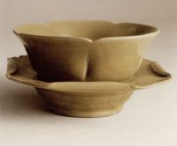 說 明: 釉色青翠滋潤.全器宛如出水荷葉,托著怒放的荷花.系越窯秘色瓷中代表作之一.