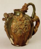 說 明: 釉色鮮麗,流淌熔融,貼塑工藝精湛,構(gòu)思奇巧,是唐代彩色釉陶器中出類拔萃之作.