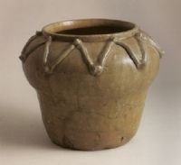 說 明: 次罐為陪葬明器,又稱為水井.釉色青中泛黃,由于火候較低,釉面有剝落.