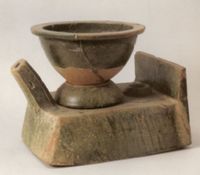 說 明: 泥質紅陶,通體施黃綠色釉,燒制火候較低,胎質疏松,胎釉結合不夠緊密.