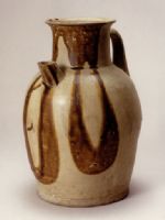 說 明: 胎質(zhì)灰黃,通體施青釉.壺流一側(cè)從口至腹部以褐色潑釉流彩裝飾.
