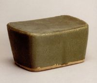 說(shuō) 明: 施單色綠釉,無(wú)紋。枕長(zhǎng)方圓角形,枕面微凹。