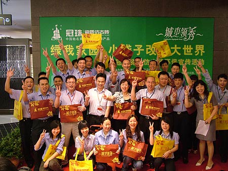 6月2日,在新明珠集團公司總部大樓一樓,冠珠陶瓷發(fā)起“綠我家園,小袋子改變大世界”環(huán);顒印P旅髦闋I銷中心總經(jīng)理彭新峰、冠珠瓷質(zhì)仿古磚品牌總經(jīng)理蔣珉、冠珠陶瓷品牌總經(jīng)理鄧勇等領(lǐng)導(dǎo)以及新浪家居、佛山日報等多家媒體記者出席了此次活動。