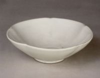 說 明: 通體施白釉,釉呈乳白色。碗口呈五瓣葵花式,口下漸斂,小圈足。