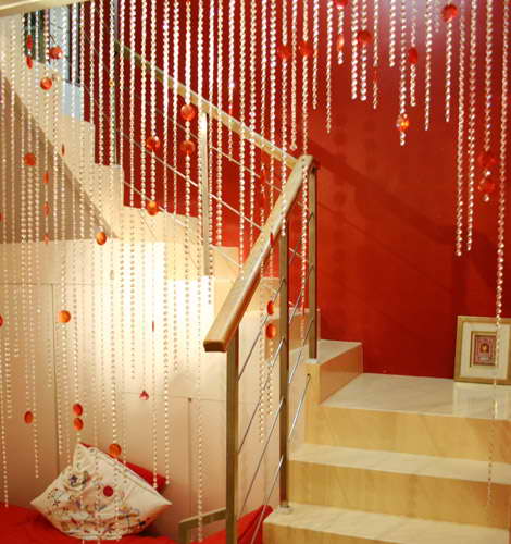 晶瑩的水晶珠簾在夏天多以淺色為主色調(diào),在夏日半晚黃昏斜陽中隨風(fēng)搖曳,別有一番風(fēng)韻。