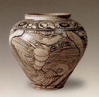 圖片名稱(chēng): 磁州窯白地褐彩龍鳳紋罐