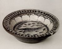 說 明: 此盆扳沿,內(nèi)壁繪仰蓮瓣紋,內(nèi)底繪魚藻紋,魚游于水草間,形象生動(dòng)逼真.