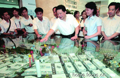 佛山市委書(shū)記林元和與禪城區(qū)領(lǐng)導(dǎo)正在察看瓷海國(guó)際陶瓷交易中心的規(guī)劃模型。
