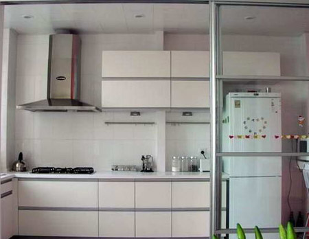 另外,用緊湊型熒光燈照明是當(dāng)前小型廚房常采用的一般照明方法;其特點(diǎn)是光效高、照明效果好,安裝使用方便。嵌入式熒光燈具造型美觀大方,光色柔和怡人,突出顯示了廚房的明凈感。熒光燈具組合照明,加上潔白的臺(tái)面與淡色的地面,廚房內(nèi)一片明亮。