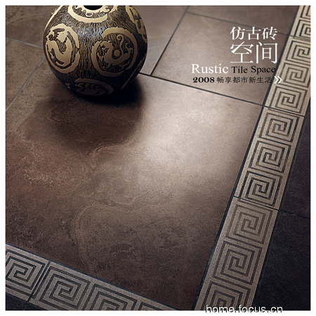 仿古風(fēng)格瓷磚故意將瓷磚表面打磨和形成不規(guī)則邊,造成經(jīng)歲月侵蝕的模樣,以塑造一種歷史感和自然感。仿古地磚腳感一般都很舒適,踩上去有踏實、溫暖、放松的感覺,突破了瓷磚腳感不如木地板的傳統(tǒng)。