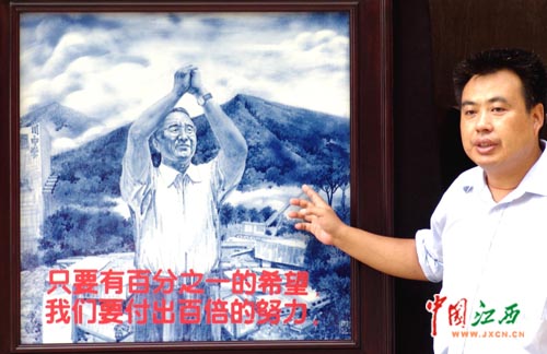 占曉初告訴記者,作為一名教師和藝術家,在災區(qū)的慘狀面前,中國人民抗震救災的壯舉,使他產(chǎn)生了要為此做點什么的想法。5月14日,他開始著手創(chuàng)作青花瓷板寫實畫,歷經(jīng)一個多月完成。