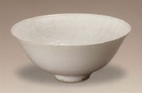 說 明: 撇口,圈足,通體施卵白色釉,足部露胎。