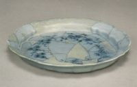 說 明: 盤較淺,化式口,白釉泛青。胎替輕薄堅(jiān)硬,青花色澤淡雅。