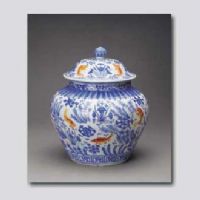 圖片名稱: 青花紅彩魚藻紋蓋罐