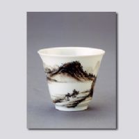 首都博物館藏。敞口,深腹,圈足。外壁以墨彩繪山水人物圖,杯心為墨彩山水。外底書青花“大清雍正年制”6字3行楷書款。