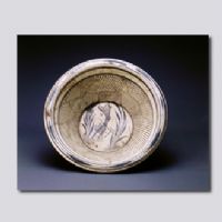 首都博物館藏。敞口,卷沿,斜壁,砂底,隱圈足,底足無釉。白釉下施化妝土,外壁施半截黑釉。盆沿飾水草圓點紋,內(nèi)壁繪白地黑花斜線紋,內(nèi)心為魚藻紋,魚游于水藻間,水波暗動,極為形象。