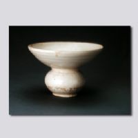 首都博物館藏。此器上大下小,口徑大于腹、底徑。上部敞口,淺腹,弧腹斜收,呈喇叭口形。下部圓鼓腹,圈足。胎體較薄,胎質(zhì)粗糙堅實。通體施白色透明釉,釉色白中泛黃,有明顯的旋坯痕。器物造型規(guī)整,精巧秀美。