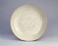 印花裝飾是宋代定窯所采用的一種主要裝飾手段。北宋中期以后定窯發(fā)明了覆燒工藝,“芒口”是這種工藝所留下的特征,覆燒可以充分利用窯的容積,大大提高產(chǎn)量。