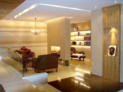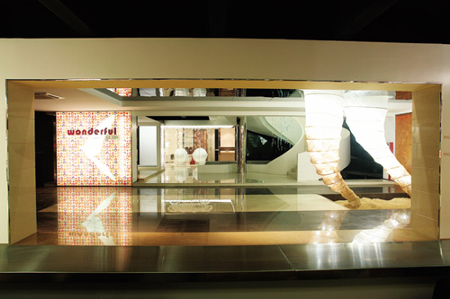 一層大廳取名為“蝶應(yīng)”,用兩股纏綿的“龍卷風(fēng)”與漫天飛舞的蝴蝶詮釋“蝴蝶效應(yīng)”。一樓主要展示負(fù)離子磚和拋光磚,產(chǎn)品空間設(shè)計(jì)出于時(shí)裝專賣展示之手法,導(dǎo)入拋光磚鏤空雕刻之藝術(shù),以氣派之勢突出拋光磚干掛,區(qū)域分布合理得體與大氣的大堂融為一體。