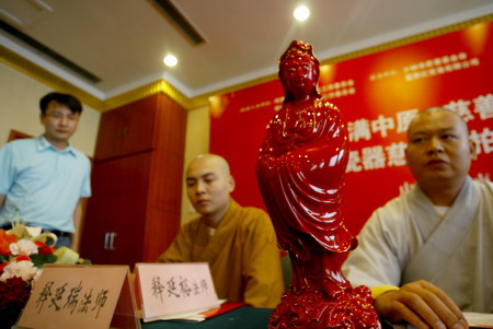 由少林寺方丈聯(lián)合海內(nèi)外107名高僧開光的12件富貴紅佛像瓷器將于7月23日在鄭州拍賣,所得善款將為少林寺慈幼院的孤兒們建一座圖書館。這是記者今天上午從“關(guān)愛滿中原,慈善助未來”富貴紅佛像瓷器慈善義拍新聞發(fā)布會(huì)上獲悉的。