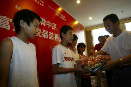 關(guān)工委領(lǐng)導(dǎo)為少林寺慈幼院的孤兒們贈(zèng)送衣服