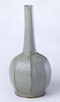 瓶直口,長頸,腹部呈八棱形,圈足外侈;野咨ィ|致密。釉呈淺青綠色,唐人陸龜蒙詩云:“九秋風露越窯開,奪得千峰翠色來”,道出了越窯青瓷的釉色特點。