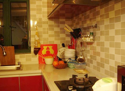再看看廚房灶頭整體吧,墻上掛的,臺(tái)面上放的很多都是宜家的,買的最實(shí)惠的那些,呵呵,用起來(lái)挺方便,看起來(lái)也順眼。碗放得有點(diǎn)亂,大家別介。微波爐好像離灶頭近了點(diǎn),但實(shí)在沒(méi)地方放,要不掛在吧臺(tái)旁邊?以后再考慮吧,打洞挺嚇人的