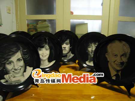 一進宋錫寧的家,記者就看到了擺在客廳桌子上的八九件刻瓷作品,立刻傻了眼。真是太美了!黑色的瓷盤上,一個個人物精致典雅,惟妙惟肖:滿頭白發(fā)的薩馬蘭奇笑容中透著慈祥和智慧;美貌驚人的戴安娜王妃優(yōu)雅地單手托腮,神采奕奕;劉翔的眼神中透露著必勝的信心;鄧麗君的微笑依舊與世無爭……再往后看,居然還有周杰倫、劉若英、Rain等當紅藝人,每件作品不但形似,而且神似。