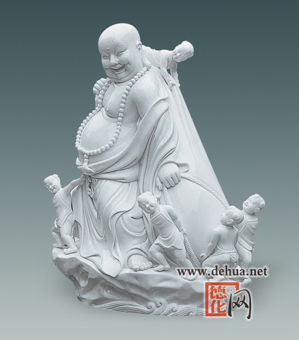 賞析:作者在繼承傳統(tǒng)彌勒佛瓷雕工藝的基礎(chǔ)上,結(jié)合現(xiàn)代表現(xiàn)手法創(chuàng)作出的彌勒平易近人,和藹可親。作品既保留古味,又不受古瓷傳統(tǒng)的束縛,寓意“多子多福”,將德化瓷雕與民間文化相結(jié)合。