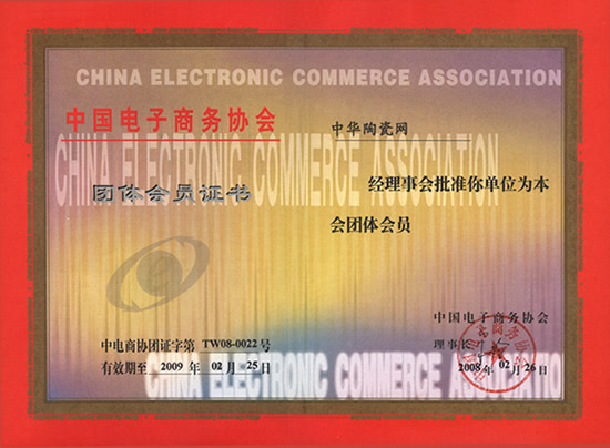 2008年2月: 中華陶瓷網(wǎng)經(jīng)“中國電子商務(wù)協(xié)會”批準(zhǔn),正式成為“中國電子商務(wù)協(xié)會”團(tuán)體會員。