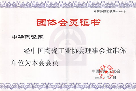 2008年4月,中華陶瓷網(wǎng)經(jīng)“中國(guó)陶瓷工業(yè)協(xié)會(huì)”批準(zhǔn),正式成為“中國(guó)陶瓷工業(yè)協(xié)會(huì)”團(tuán)體會(huì)員