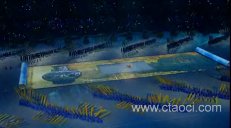 1個多小時的文藝表演,畫卷中央鋪放著一張白紙,畫紙四周的綾子上,流淌著中國文化起源和發(fā)展的圖案,有巖畫、陶器和青銅器……《畫卷》表現(xiàn)了中國歷史文化的起源和發(fā)展:造紙術(shù)是中國古代四大發(fā)明之一,巖畫是中國先民留給后人的珍貴文化遺產(chǎn),陶器則更是一個具有中國代表的元素之一,瓷器也是“絲綢之路”上輸出國外的重要商口這一。