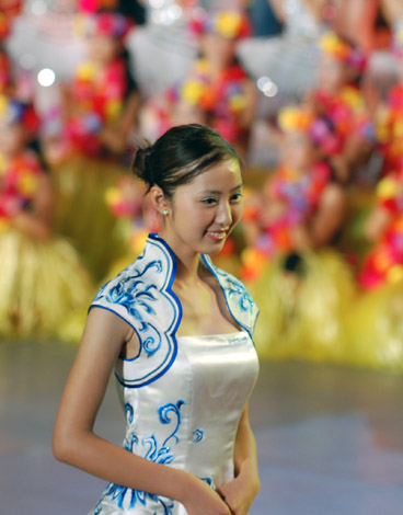 奧帆禮儀四朵金花 穿青花瓷驚艷亮相