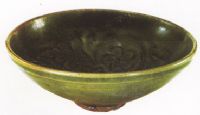 敞口微斂,弧壁,圈足。內(nèi)刻嬰戲蓮紋。通體施青釉,釉色泛黃。胎壁較厚,胎質(zhì)細(xì)膩。此器釉質(zhì)光亮熒潤(rùn)·所刻嬰戲紋是耀州窯裝飾的典型紋樣、刻花犀利,線條流暢,頑童生動(dòng)可愛(ài),反應(yīng)出耀州窰刻畫技術(shù)之高超
