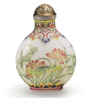 北京翰海在2005年秋拍推出的清乾隆御制料胎琺瑯彩開光山水鼻煙壺,最終以352萬元成交,成為內(nèi)地成交價最高的鼻煙壺,而該拍品在2000年天津文物公司的拍賣會上以242萬元成交,創(chuàng)造了當(dāng)時的拍賣紀(jì)錄。