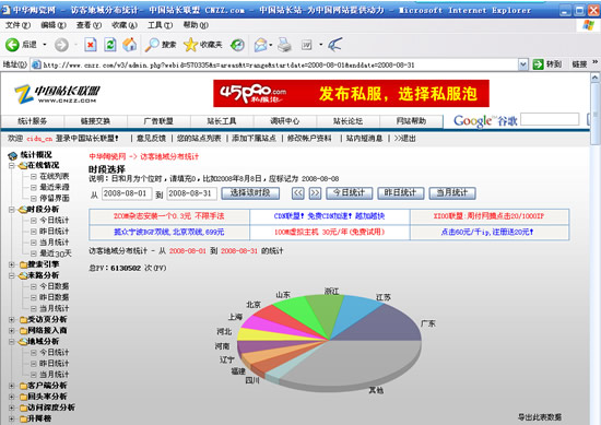 據(jù)中國(guó)站長(zhǎng)統(tǒng)計(jì)#對(duì)中華陶瓷網(wǎng)統(tǒng)計(jì)顯示,中華陶瓷網(wǎng)8月總訪問(wèn)量達(dá)6130502人次,中華陶瓷網(wǎng)在開(kāi)通一周年及奧運(yùn)之際月創(chuàng)下了令人可喜的成績(jī),除個(gè)別周未,日訪問(wèn)量均在20萬(wàn)以上,也創(chuàng)下中華陶瓷網(wǎng)至開(kāi)通以來(lái)單月最高訪問(wèn)。另,中華陶瓷網(wǎng)8月開(kāi)通了"2008陶瓷與奧運(yùn)"專題,也吸引了幾十萬(wàn)訪客點(diǎn)擊,也創(chuàng)下單個(gè)專題點(diǎn)擊最高。