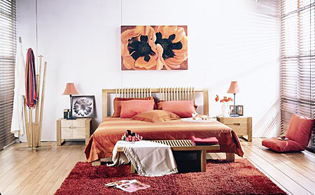 利用視覺感受來改變居室空間印象。有兩種方法:一種是將空間擴(kuò)大,例如將墻面或天花板涂飾成接近天空的淺藍(lán)色,這樣可以產(chǎn)生空間擴(kuò)大的視覺效果。另一種作法是發(fā)揮色彩的功效去創(chuàng)造特定的室內(nèi)氣氛。墻面裝飾可選用色彩強(qiáng)烈的民間工藝品,也可采用抽象的色塊,只要使形和色協(xié)調(diào),就能收到令人滿意的效果。