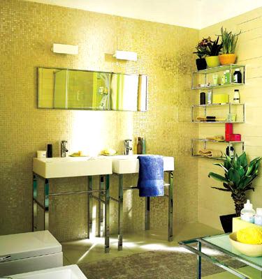 人們對奢華的追求從來沒有停止過,雖然不是誰都可以消費得起,但是奢華的產品卻總是可以贏得更多關注的目光。而今用馬賽克裝點衛(wèi)浴間早已不是什么稀罕事,但給普通的馬賽克穿上金箔的外衣,來裝點我們的衛(wèi)浴間卻成了一種奢適的享受。
