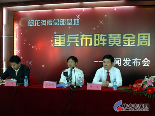 黃金周即將來到,陶瓷行業(yè)積極備戰(zhàn),作為北京市最大的陶瓷龍頭銷售企業(yè)的閩龍?zhí)沾煽偛炕,召開備戰(zhàn)黃金周的新聞發(fā)布會(huì),董事長(zhǎng)陳進(jìn)林表示:希望通過今天的發(fā)布,讓社會(huì)上更多的人了解這個(gè)行業(yè)在奧運(yùn)后的發(fā)展走向以及百姓同這個(gè)行業(yè)發(fā)展中得到更多的信息和實(shí)惠。