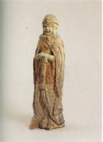 甲胄等部位飾以朱彩。此俑高鼻深目,具有鮮卑族的特征。北魏時武士俑,其造型、服飾大多相同,或握劍,或按盾,無不形貌威猛,蘊涵著威武和強悍的性格。