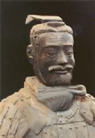 軍吏俑為灰陶,泥質(zhì)細膩。該俑昂頭前視,是英勇善戰(zhàn)的將士。秦代的匠師們以寫實手法,真實生動地刻畫軍吏形象