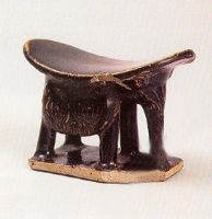 瓷枕出土于唐墓,為大象形,直立于平板座上,像鼻觸地,背駝枕面,枕面是長橢圓,兩頭翹起呈馬鞍形。通體施黑釉,大象雕塑簡單,形象笨拙,是塑雕藝術與實用品的巧妙結合,胎土白硬。從胎、釉、造型等特點看屬唐代耀州窯的產品。