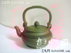 在“神七”發(fā)射再圓國人飛天夢想之際,來自宜興陶藝世家的曹安祥先生特別設(shè)計制作了一把“雙龍?zhí)崃簤?rdquo;,表達(dá)他對“神七”成功飛天的祝賀之情。據(jù)2008年被中國收藏家協(xié)會評為“收藏家喜愛的紫砂藝術(shù)大師”的曹安祥介紹,這把壺在設(shè)計上簡潔明朗,動靜結(jié)合,壺身圓潤而簡潔,壺嘴為龍頭,壺鈕為龍珠,壺把為雙龍戲水,并巧妙的配以天然紫泥,使整體結(jié)構(gòu)氣勢磅礴,出神入化,給人以“雙龍飛騰,飛龍出水”的感覺。圖為榮獲了“中國西博會(國家級)金獎”的“雙龍?zhí)崃簤?rdquo;。