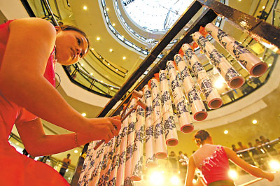 昨日下午,在解放碑大都會(huì)廣場中庭,六位身著古裝的美女,用青花瓷演奏民樂《喜洋洋》、世界名曲《我們的摩爾瓦多》等,引得觀眾連聲叫好。這是我市市民首次看到用陶和瓷制作的中國樂器。據(jù)了解,這是“景德鎮(zhèn)瓷樂坊”世界首創(chuàng)且首度來渝演奏。