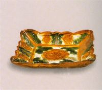 圖片名稱: 三彩釉印牡丹紋方碟